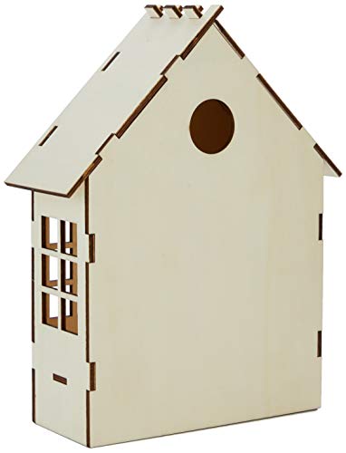 Monteer zelfs huis van licht hout met contouren rond ramen en deur. De achterkant van de behuizing is gemakkelijk te verwijderen, zodat de behuizing gemakkelijk binnen kan worden ingericht.