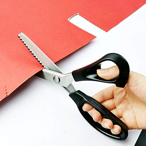 Deze pinking schaar voor dressmaking is goed voor het snijden van vele soorten stof en papier die niet te dik zijn, zoals katoen, vilt, synthetische stoffen, polykatoen, denim, hessian, papieren kaart.